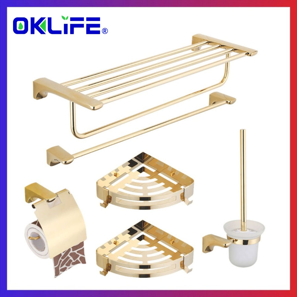 [OKLIFE®]White/Gold Aluminum Bathroom Accessories Set